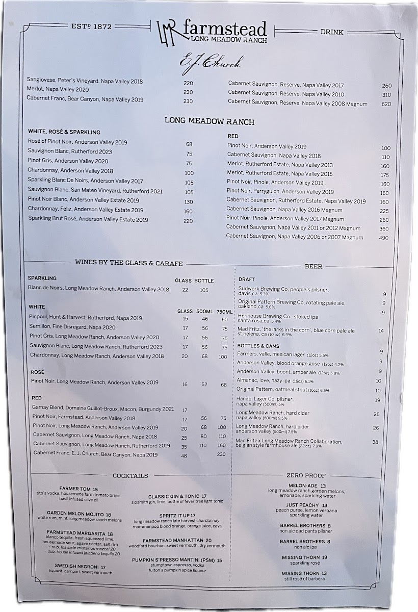 Farmstead at Long Meadow Ranch - Non-Alcoholic Beverages